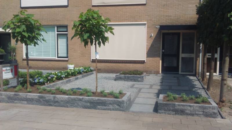 Onderhoudsvriendelijke voortuin met ruimte voor groene borders.